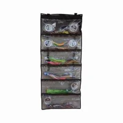 Carry all your lures easily with the Black Magic 6 Pocket Wrap Wallet. This tackle wallet rolls up making it perfect to travel with all the kit you need. Made with a heavy duty polyester it can handle being knocked around and will be excellent protection for your best lures. Easily view your collection in the 6 clear pockets that are backed with a breathable mesh for added airflow and drainage.