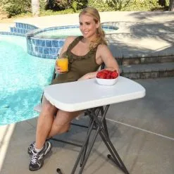 The Lifetime Blow Mould Table folds in half to a compact size that is easy for transporting and storing. A perfect side table for your next camping adventure.