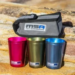 These tough Travel Cups by MSA are made from anodised aluminium meaning you will never need to buy new cups for your kit ever again! The aluminium helps to keep your bevvy cold and won’t degrade over time, so no funny taste like you eventually get with plastic cups. They come in a set of 6 with 3 different colours, blue, pink and green, and have a handy canvas storage bag to keep them safe and organised when not in use.