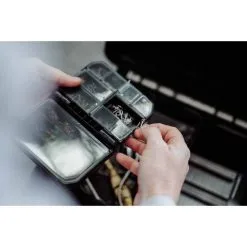 Keep your tackle essentials by your side with the Meiho Versus VS-318DD folding tackle box. This box features a folding lid design with 5 removable dividers, and is a great storage solution for any essential bit of tackle. The spring loaded design also keeps everything tidy when you’re on the go; you’ll never have to worry about a messy tackle box ever again. A great compact box made in Japan from the team at Meiho Versus.